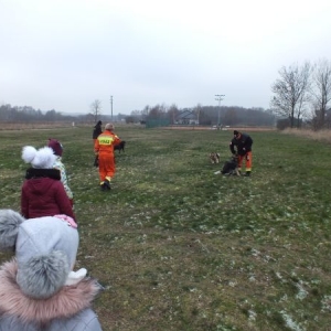 Dzisiaj (23.01) spotkaliśmy się z Sekcją Psów Poszukiwawczo - Ratowniczych OSP Jasień. Dzieci wysłuchały ciekawych opowieści Pani Ewy oraz Panów Piotra i Krzysztofa, nauczyły się jak należy traktować psa, jak do niego podchodzić, zobaczyły kilka elementów tresury. Następnie udaliśmy się w teren, gdzie mogliśmy zobaczyć fragment akcji poszukiwawczej. Na koniec spotkania rozgrzaliśmy się przy ciepłych napojach i słodyczach. To był bardzo udany dzień. Dziękujemy Sekcji Psów Poszukiwawczo - Ratowniczych za mile spędzony czas.